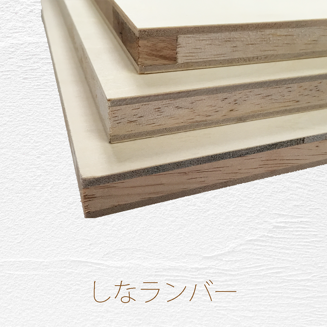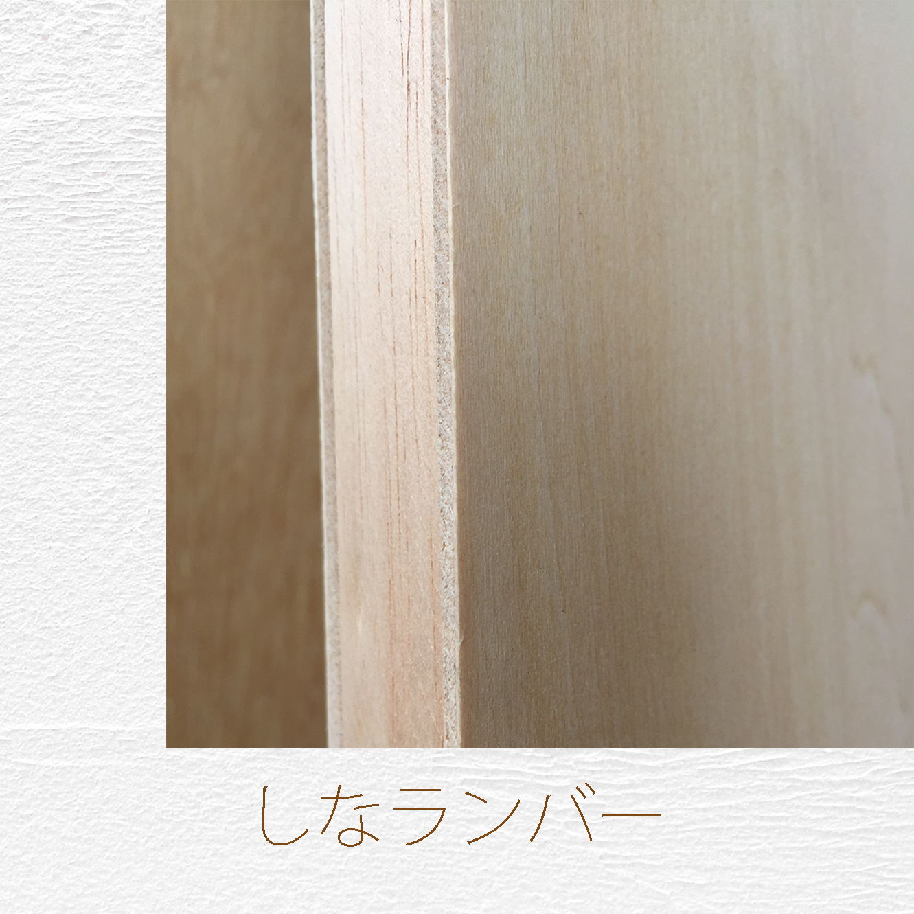 表裏のきれいなランバーコア合板(準両面)。合板に比べ、ファルカタ集成材を使用しているため軽く、小口の釘の保持力が高い。