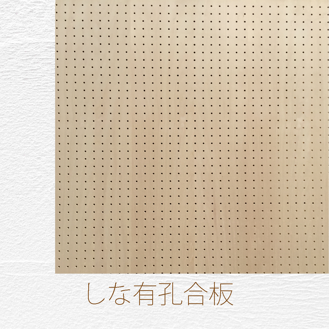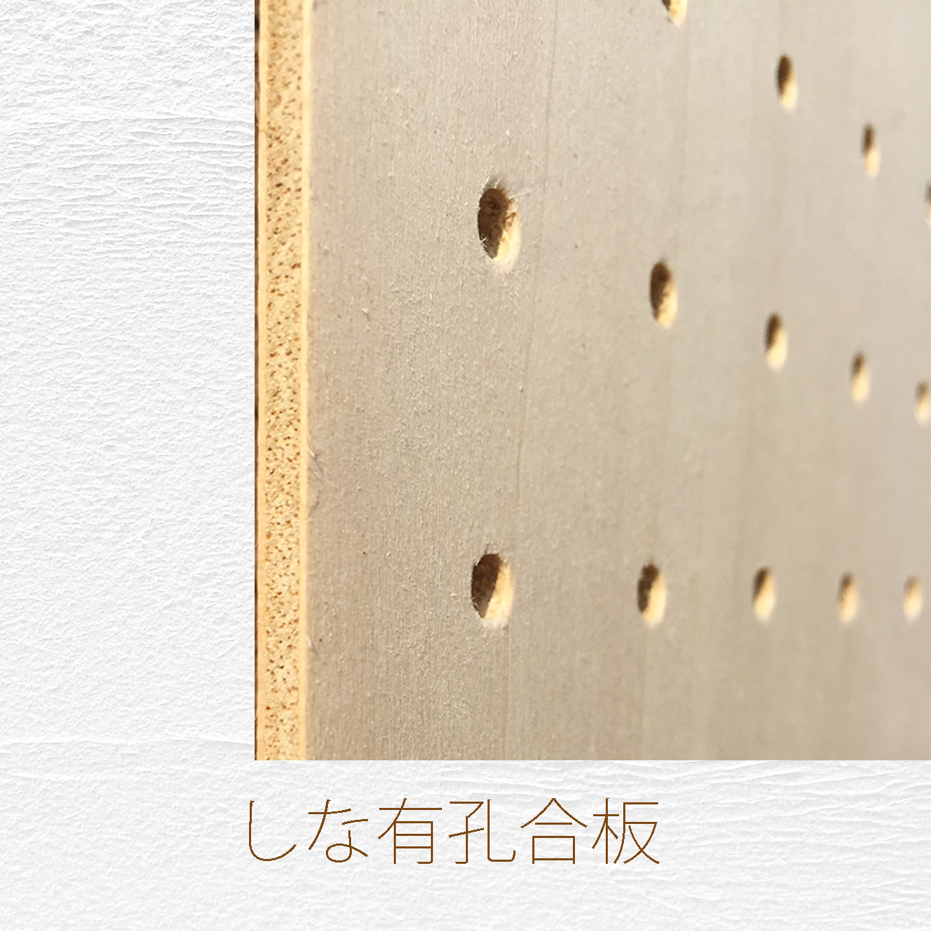 しな片面合板に、直径5mm、25mmピッチの穴が開いている合板。